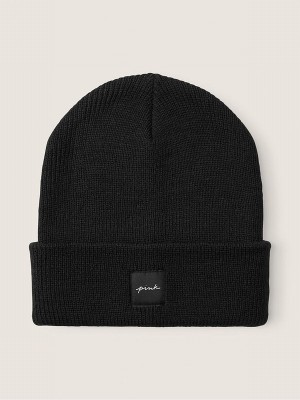 Black Victoria Secret Pure Rib Beanie Hats | KRXZW5647