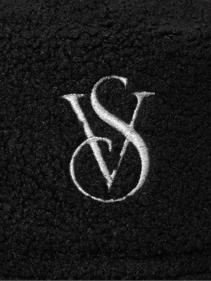 Black Victoria Secret Reversible Teddy Bucket Hats | FKPAC0814