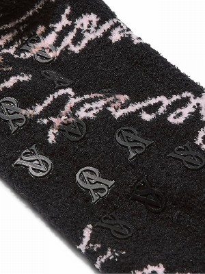 Black Victoria Secret Script Fleece Socks | ELANR2456