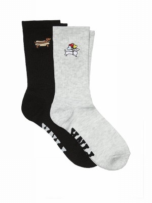 Grey / Black Victoria Secret Heather & Pure Crew Sock 2-Pack Socks | TDPFA2845