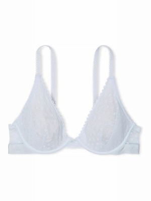 Blue Victoria Secret Hydrangea Dainty Dot Plunge Lace Bras | WGUYB8196