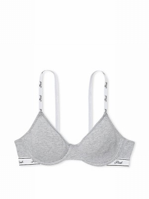 Grey Victoria Secret Heather Cotton Logo Unlined Scoop Bras | LKCEZ0352
