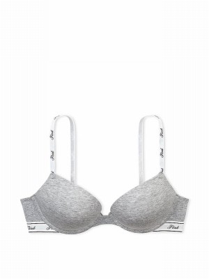 Grey Victoria Secret Heather Super Push Up Cotton Logo Bras | IRALF7831