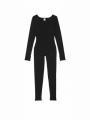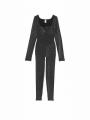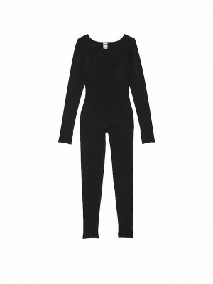 Black Victoria Secret Long Sleeve Square Neck Jumpsuit | FPXMA7920