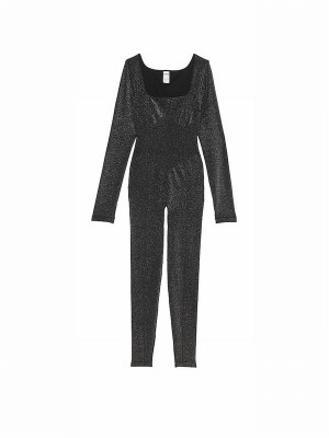 Black Victoria Secret Shine Seamless Square Neck Jumpsuit | QNCWU9826
