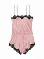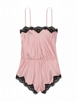 Rose / Pink Victoria Secret Chalk Satin Lace-Trim Jumpsuit | JIACP8594