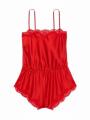 Red Victoria Secret Vermillion Satin Lace-Trim Jumpsuit | FLWEJ0183