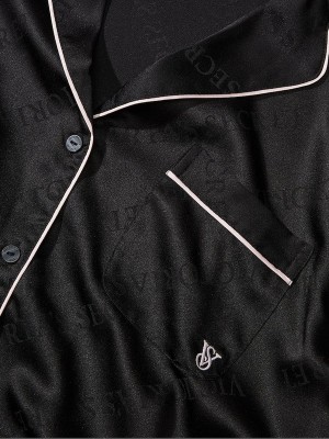 Black Victoria Secret Logo Satin Long Nightwear | MGUJV1798