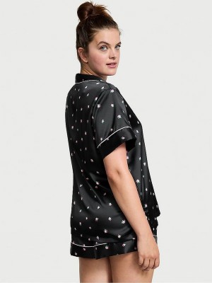 Black Victoria Secret Rosebuds Satin Nightwear | CXPVN3927