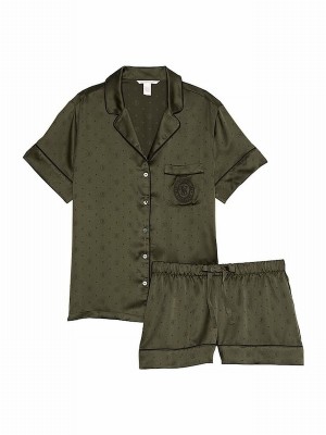 Green Victoria Secret Logo Dot Satin Nightwear | DKWNH9604