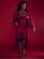 Red Victoria Secret Campari Satin Lace Trim Open Back Robe Lingerie | BACGK8720